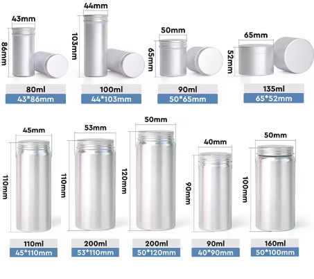 These aluminum jars are versatile and suitable for cosmetic cream, hair wax, supplements and capsules, candle, candy, and tea canister uses. Made of high-quality aluminum with customizable surface handling options like spray-painting, embossing, silk screen printing, and oxidized finishes, they offer durability and aesthetic appeal. Available in multiple colors including silver,white, gold, red, pink, and black, these jars provide flexible branding opportunities with custom logo acceptance.
